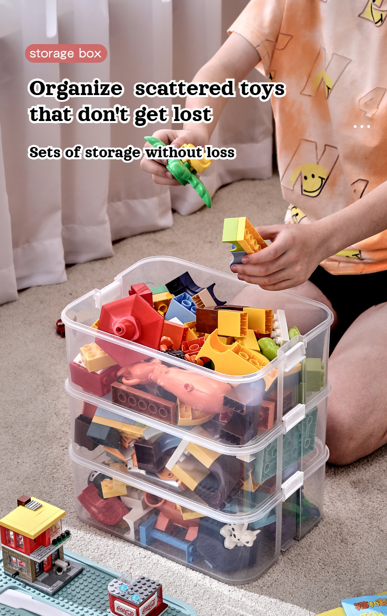 Household building block storage box layered stackable Lego storage box children's toy parts desktop