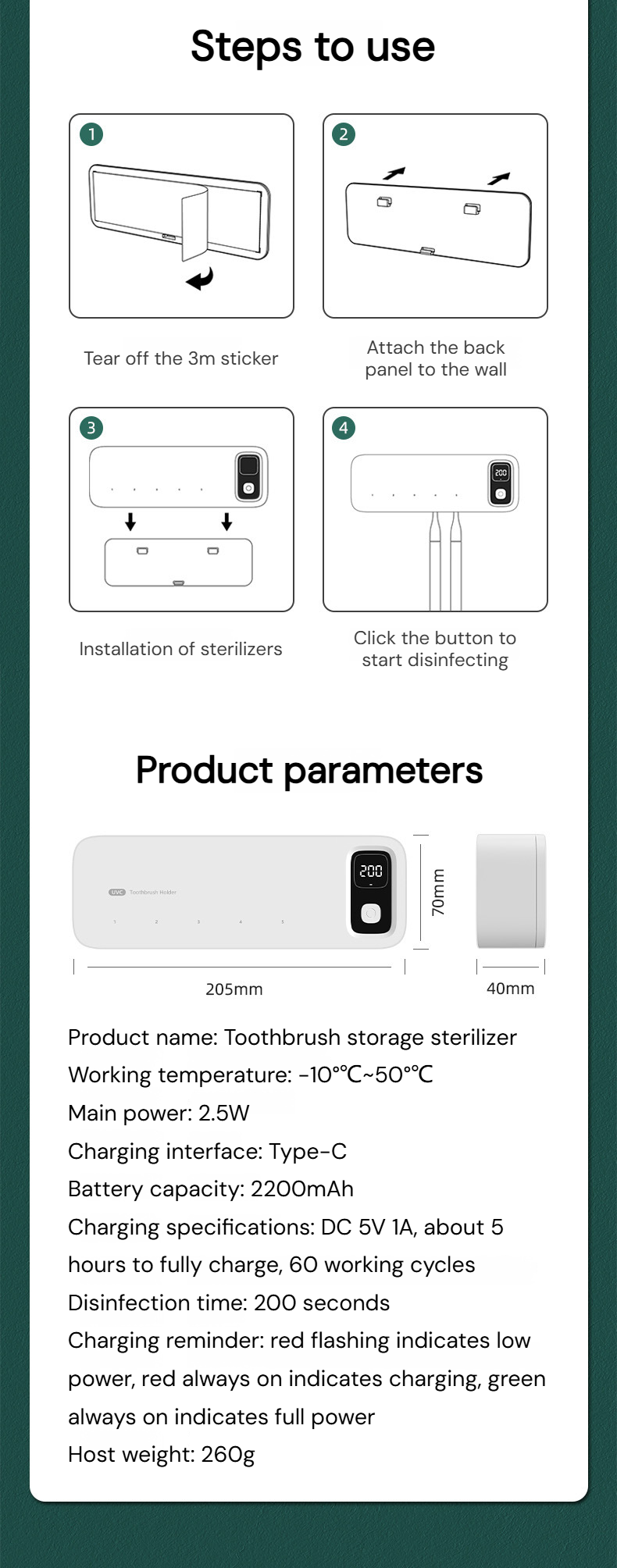 Toothbrush Storage Toothbrush Sterilizer Simple Smart Electric Air Drying Rack Charging UV Storage B