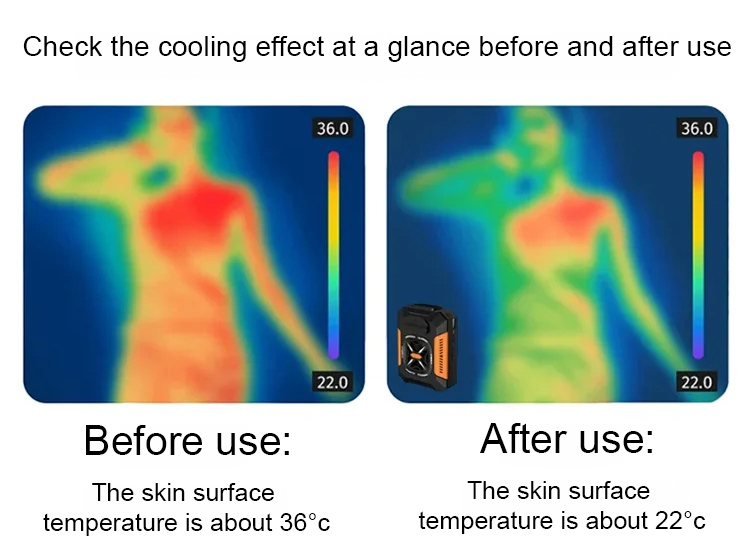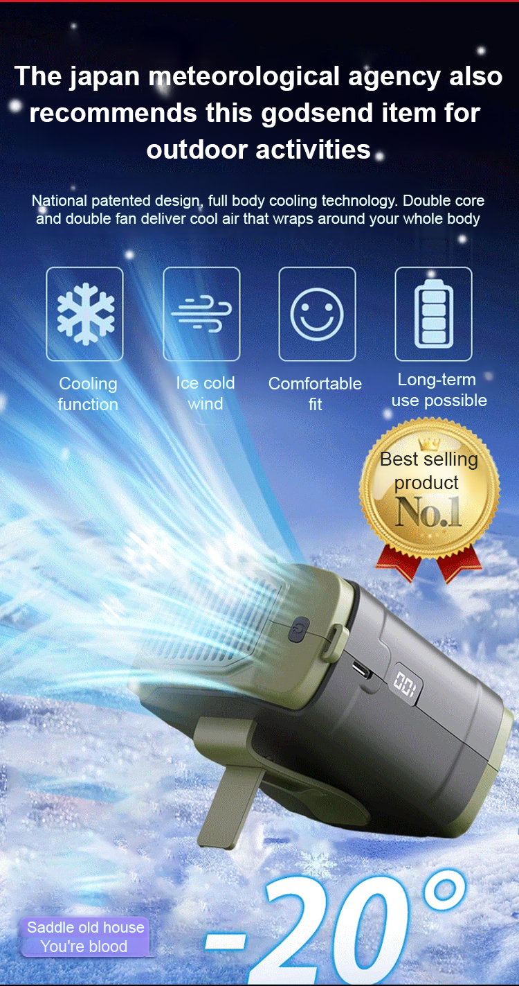 Hang it on your waist, and even when the temperature reaches forty degrees, you can feel a sixteen-degree air conditioning breeze. 🌟 Equipped with an AI intelligent cooling chip. Reduces body temperature by 16 degrees within 3 seconds. 🌟