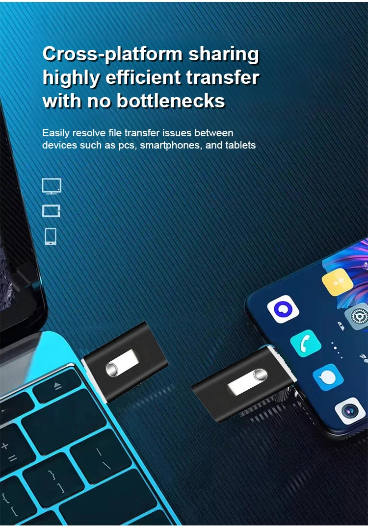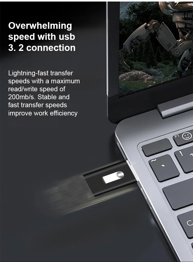 200MB/s high-speed transfer rate. Supports Apple, Android, and computer systems. Multifunctional integrated USB drive. Suitable for various file formats. Ensures secure data transfer. 50% discount offer ends in the last hour.